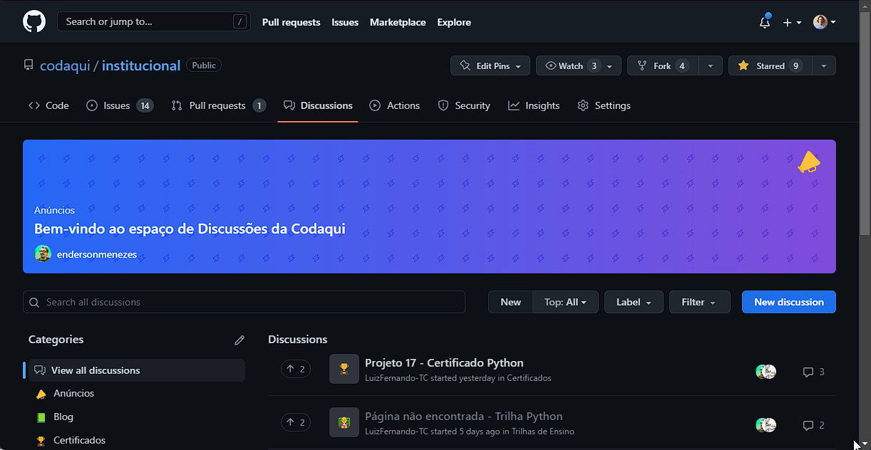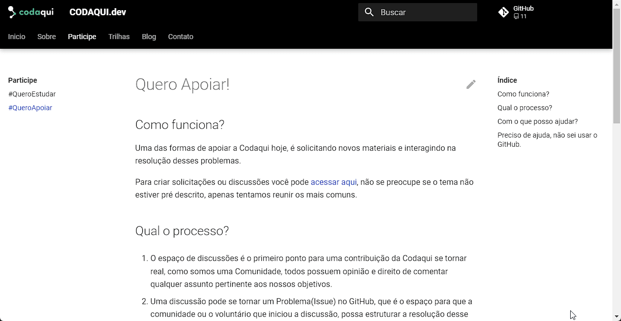 - Ao abrir uma Discussão, conforme orientado no “Como participar”, ela será transformada em um Pull Request e passará pela avaliação da Codaqui para que seja mergeado ou não.
