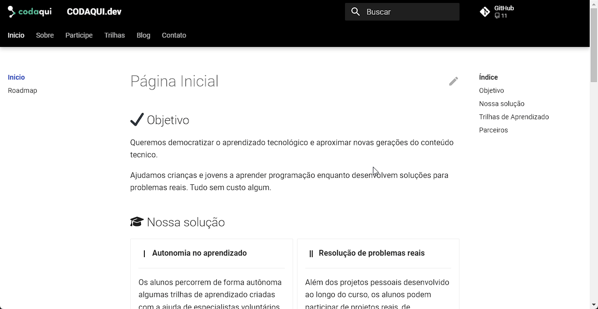 A Codaqui é uma escola de programação sem fins lucrativos que apoia jovens que desejam aprender a desenvolver produtos tecnológicos mas não possuem acesso a uma educação tecnológica por outros meios.