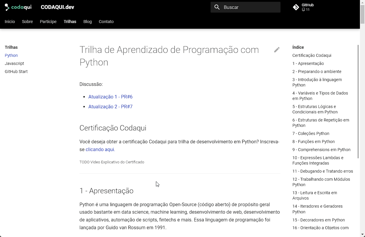 - Acesse os links apresentados na trilha e verifique se estão todos funcionando e disponíveis. Caso identifique algum link com problemas, crie uma discussão informando o problema identificado, clicando aqui.